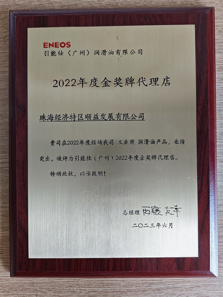 2023年6月2日,引能仕(广州)润滑有限公司在成都成功举办了2023年度经销商会议。顺益荣获广州引能仕“2022年度金奖牌代理店”称号,成为引能仕在中国市场优秀的合作伙伴之一。